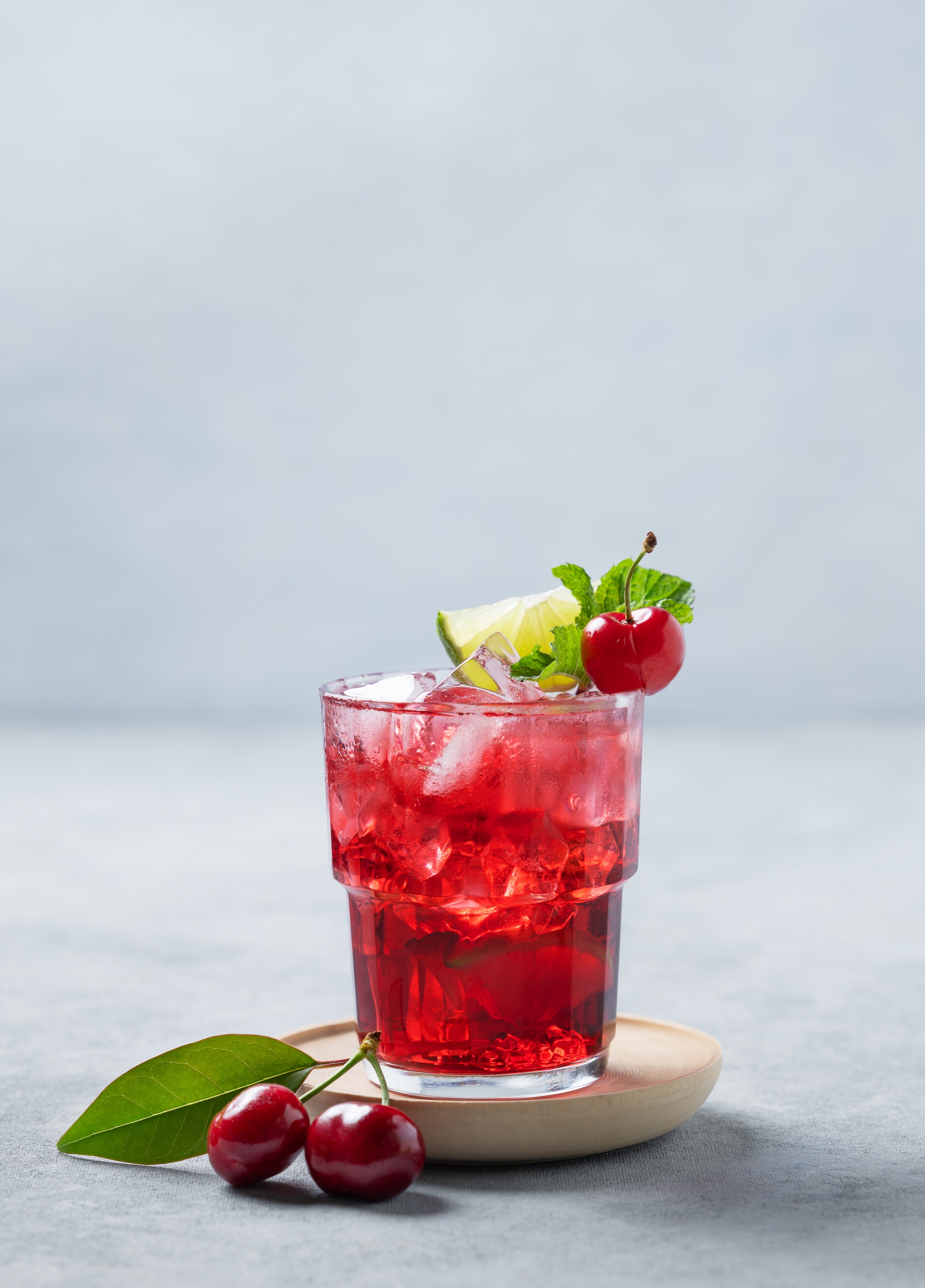 Cherry-lime,Mojito,Cocktail,With,Mint,,Lime,And,Ice,On,A