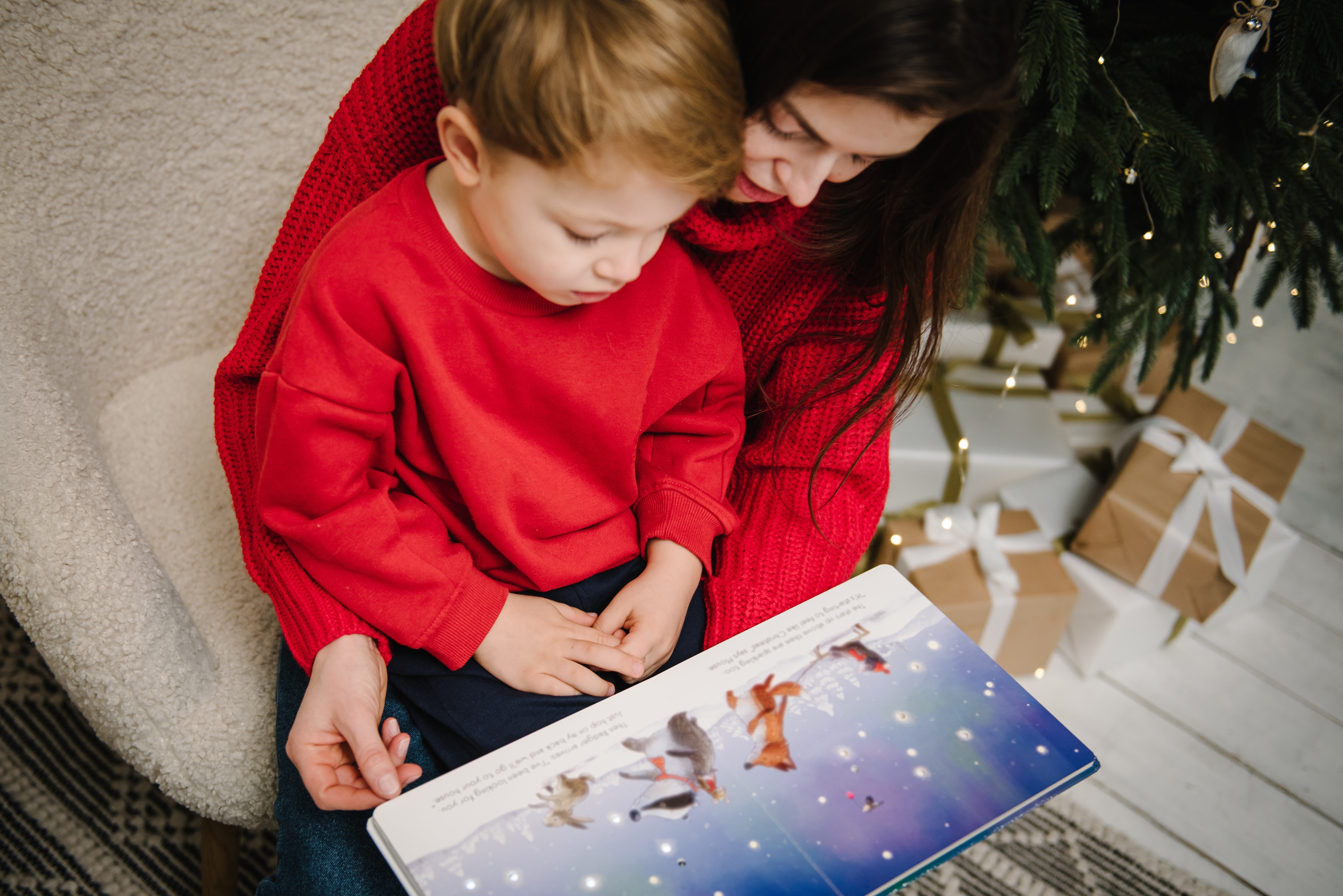 Mother,Reading,Book,For,Child,Boy.,Mom,Hugs,Her,Son