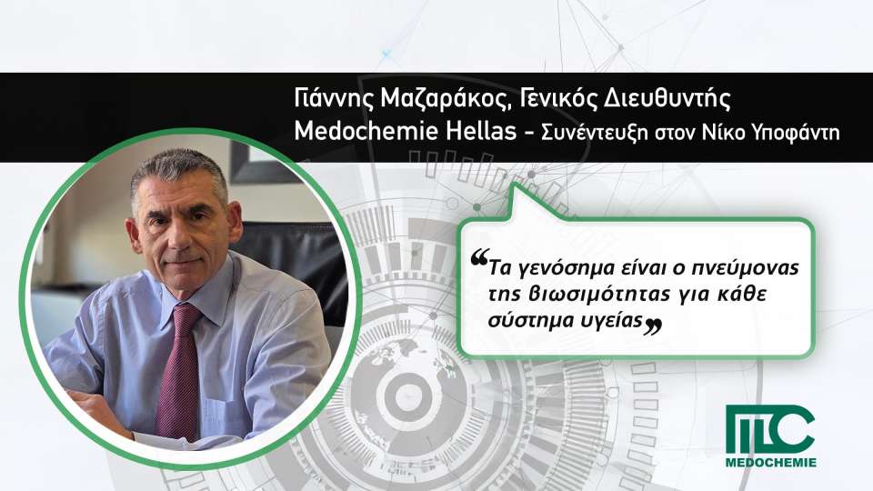 Ο Γιάννης Μαζαράκος, Γενικός Διευθυντής της εταιρείας Medochemie Hellas, ξεδιπλώνει το όραμα πίσω από μια διαδρομή 50 ετών στον χώρο του φαρμάκου και εξηγεί πώς η ποιότητα και η ανθρωποκεντρική προσέγγιση αποτελούν τη μοναδική απάντηση στις σύγχρονες προκλήσεις της υγείας.