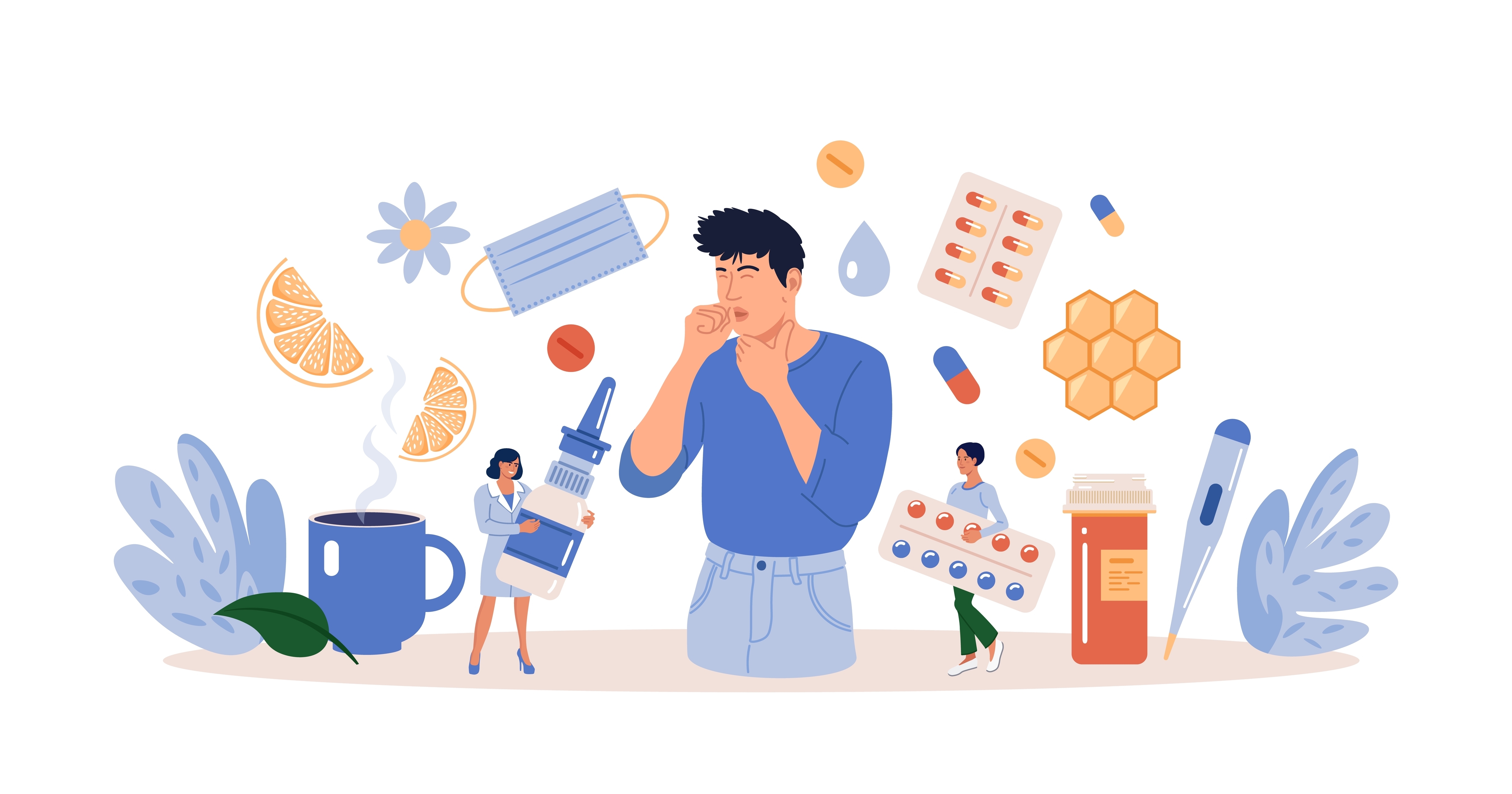 ■ Άνεση. Η τακτική ενυδάτωση καταπραΰνει τον ερεθισμό και βοηθά στην αραίωση των εκκρίσεων. Η χρήση παστίλιων χωρίς ζάχαρη λιπαίνει τον ρινοφάρυγγα και καταπραΰνει τον ξηρό βήχα. Υγράνετε τον αέρα και διατηρήστε μέγιστη θερμοκρασία 18-19°C στην κρεβατοκάμαρα για να αποφύγετε την ξήρανση των βλεννογόνων. Η ρινική πλύση καθαρίζει τις εκκρίσεις που τρέχουν στο πίσω μέρος του λαιμού και πυροδοτούν τον βήχα. Κοιμηθείτε με το κεφάλι σας ψηλά εάν έχετε βήχα τη νύχτα. Αποφύγετε το κάπνισμα. Επίσης, η εισπνοή ατμού βοηθά στη ρευστοποίηση της βλέννας, ενώ οι γαργάρες με θαλασσινό νερό καθαρίζουν τον λαιμό. Πολύ σημαντική είναι η επαρκής ενυδάτωση για να παραμένουν υγρά τα επιχρίσματα των αεραγωγών και να μειώνεται ο ερεθισμός.